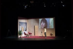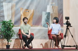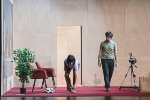 En “Simulacro” dos personas crean su propia ficción, una que responda a sus deseos y que encaje en su pequeño mundo de simulacros donde la vida sucede de manera controlada, a una escala hecha a la medida de sus necesidades.