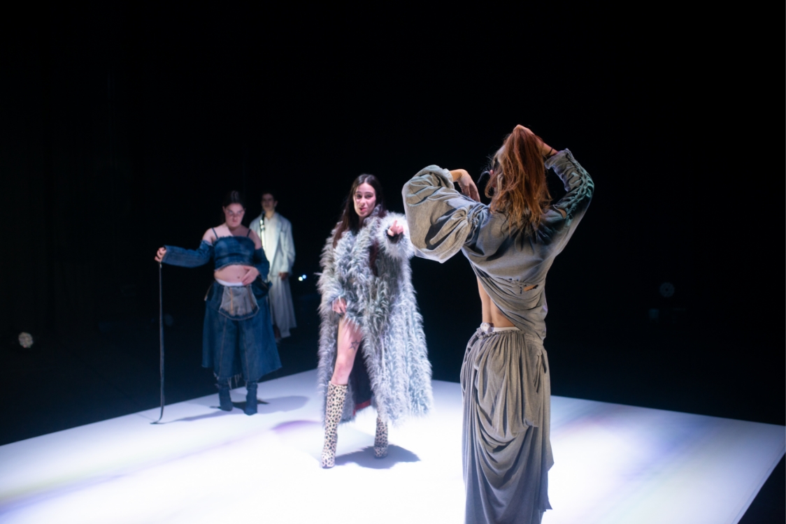 Divas desubicadas, artistas martirizadas, virtuosidad a medias. Una cantante que canta con autotune y aún así canta mal. Se lleva ser graciosa, pero no positiva. Se lleva sacar un EP. Se lleva leer un montón de libros de teoría queer. Emprender tu propio proyecto. O sea… se lleva ser original. Hay que ser perfecta. Cuatro personas interactúan con los mecanismos visibles de un teatro que es un cuerpo, delimitándolo como territorio de conflicto. Las intérpretes corporeizan el deseo de ser una cosa diferente a una misma, provocando una vorágine de juicios e identidades que lo rompe todo y celebra el fallo. “Quiero ser una copia barata de otra persona, tengo un alma de plástico, qué más da”.