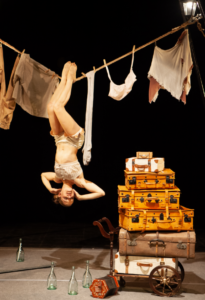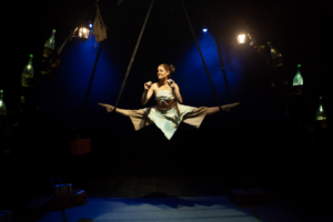 Ikuskizuna pertsonaiaren egoera emozional ezberdinetatik igarotzen da, diziplina anitzeko zirkuko lengoaian oinarritzen direnak: magia efektuak, modu akzidentalean sortzen direnak, espazio horren berezitasuna indartuz. Botilei buruzko ikerketa bat garatzea: manipulazioa, orekak eta objektuaren desmitifikazioa, pertsonaia, eszenografia edo euskarri-elementu hutsa eginez. Aireko akrobazia, karga teknikokoa, baina modu organiko eta koherentean garatua eta, jakina, umorea eta poesia zeharkako elementu gisa.